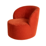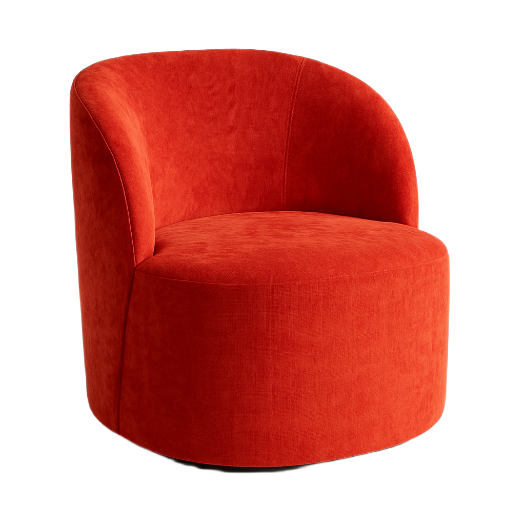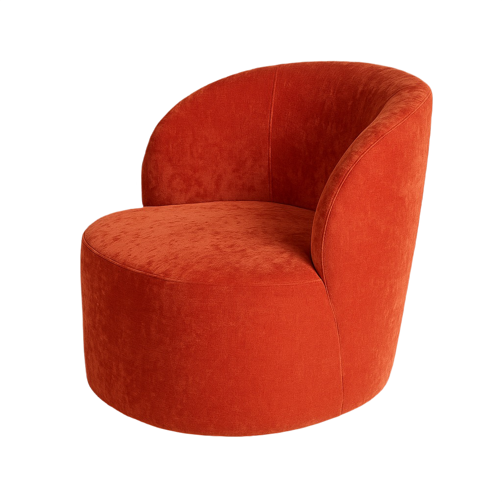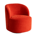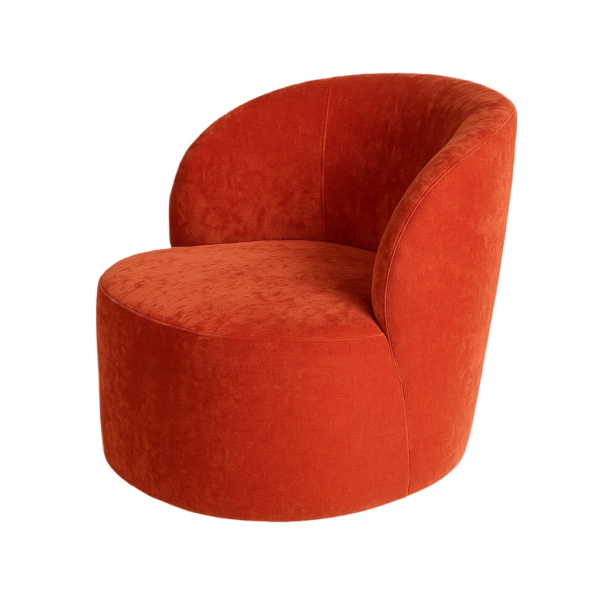 Shell fully upholstered, with rubber buffer detailing. Finished with an SS electroplated skirting and integrated rotating mechanism.