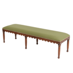 A bench crafted with solid beech wood legs and detailing, carefully stained to enhance the grain and tone. The seat is fully upholstered for comfort, finished with classic metal studs for a subtle touch of edge