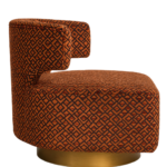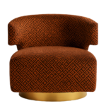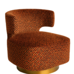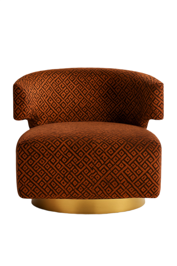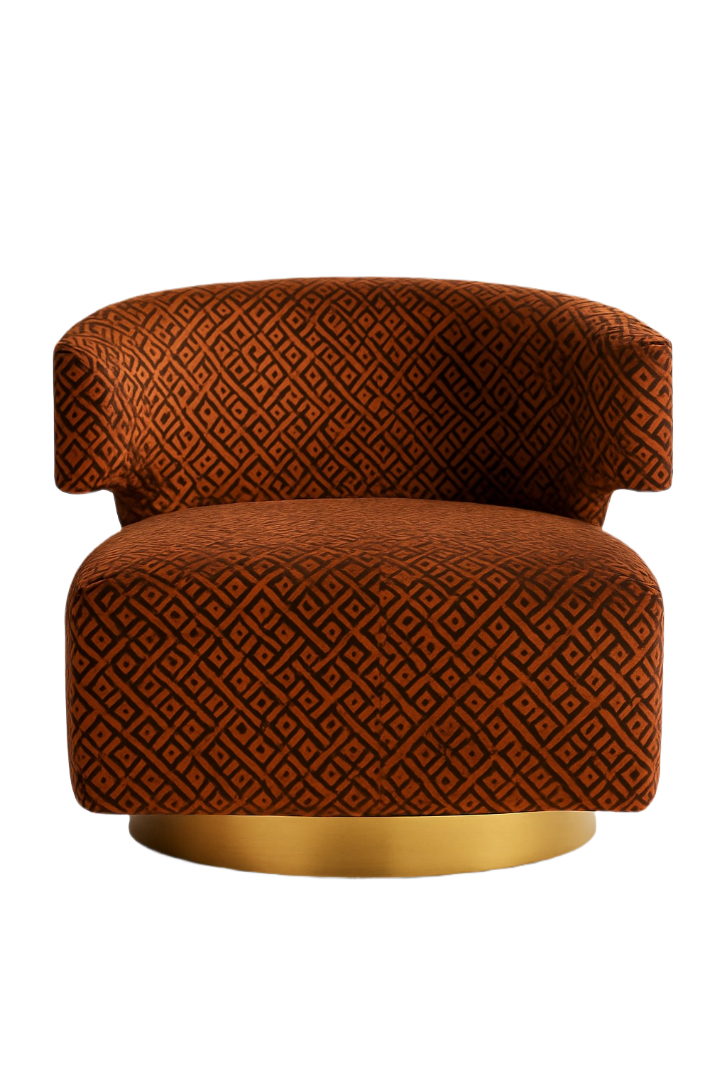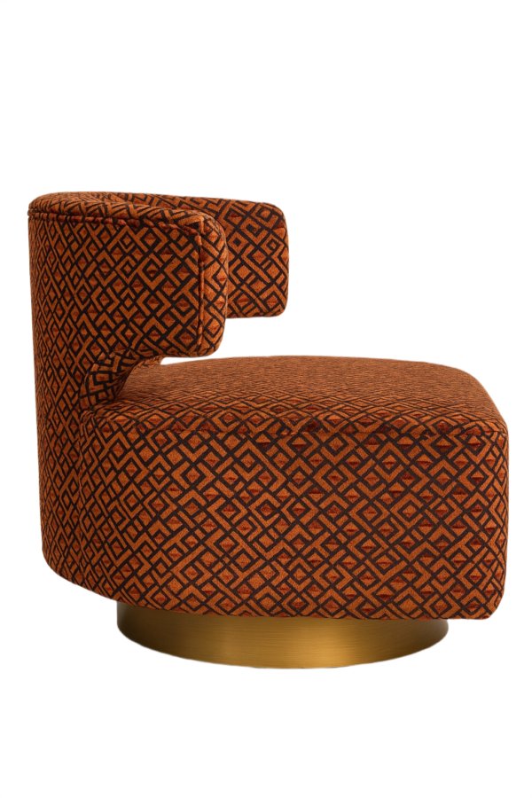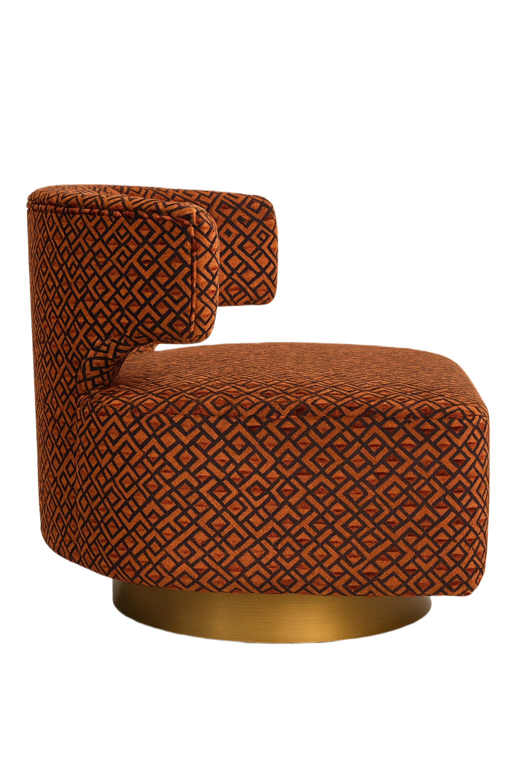 Shell fully upholstered in patterned fabric, finished with an SS electroplated metal skirting.