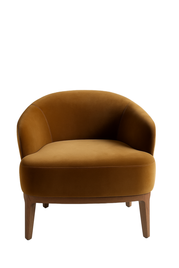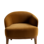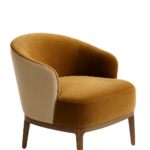 Frame in solid ash wood stained. Seat and back fully upholstered in a mix of velvet and leather, finished with soft piping detailing.
