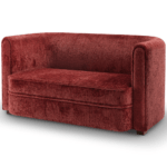 2-seater sofa with a rounded backrest and rich velvet upholstery in deep burgundy. Perfect for cozy corners or intimate lounge settings.