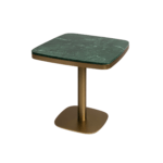 The top is made with Indian green marble, featuring rounded corners and straight-cut edges. It’s supported by a marine plywood underlay for added durability. The marble is framed with a slim stainless steel sidetrim and base, finished with an electroplated coating. A metal cross plate underneath provides extra reinforcement.