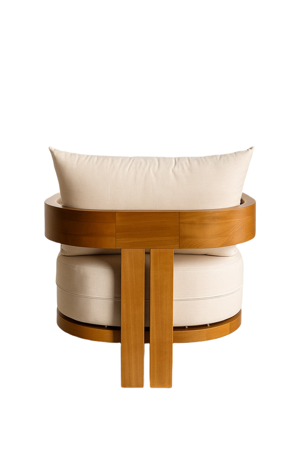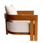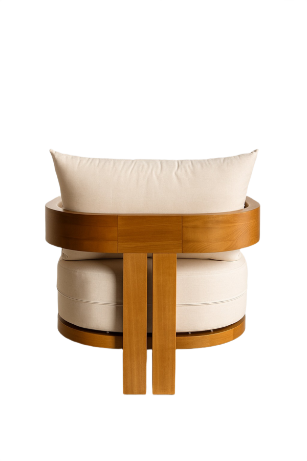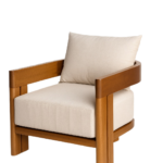 Outdoor-ready lounge chair featuring a solid iroko wood frame with an oiled finish, a removable seat cushion, and one loose decorative cushion for added comfort.